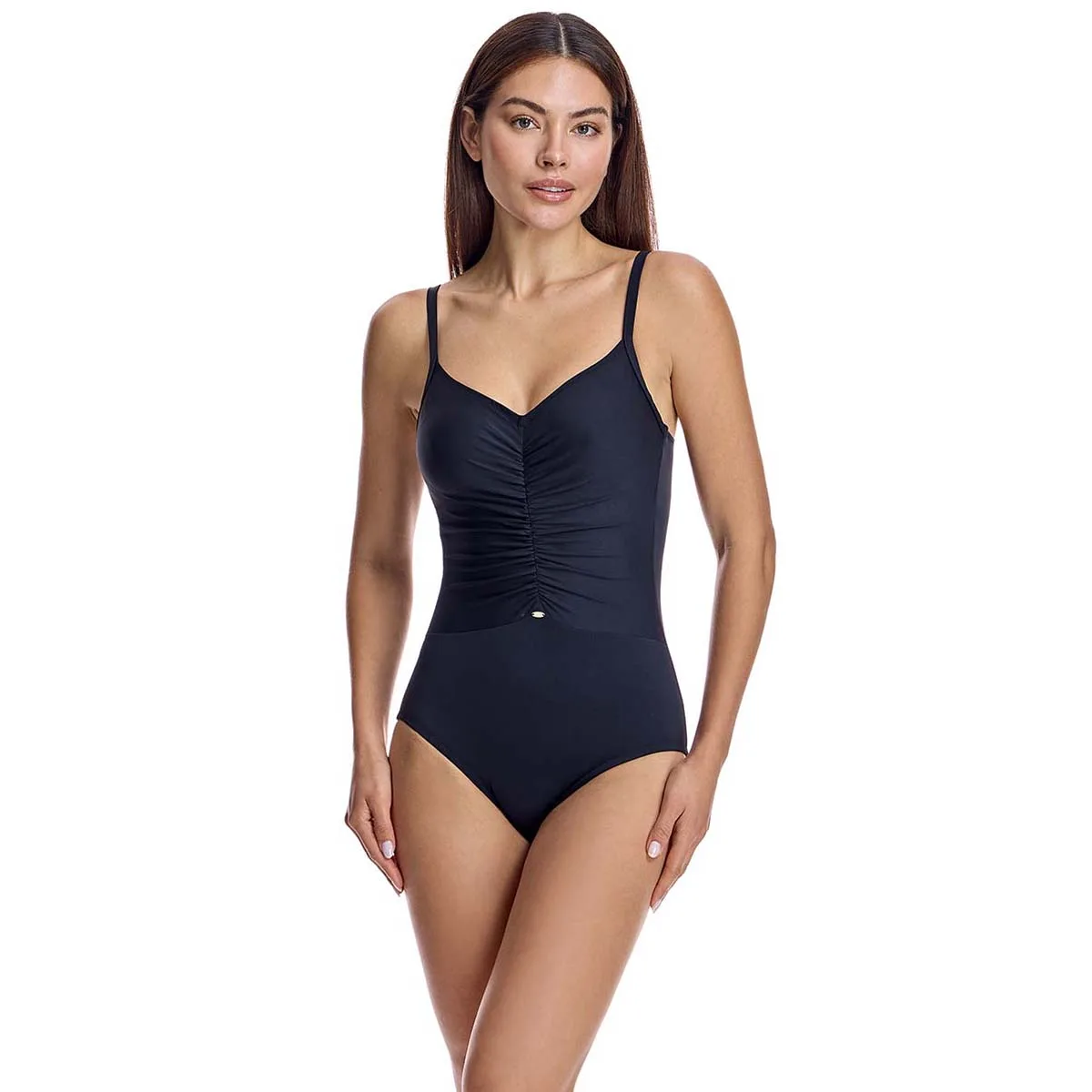 Dit eendelige badpak voor dames combineert elegantie en comfort met een afslankend ontwerp dat het silhouet flatteert. De hoogwaardige materialen en zorgvuldig vervaardigde details maken het een ideaal damesbadpak om er verfijnd uit te zien op het strand of bij het zwembad.nn Details:n - V-halslijn.n - Verstelbare bandjes.n - Gerimpeld aan de bovenkant.n - Buikcontrole.n - Foam cups.n - Lage U-vormige rug.n - Sneldrogend en chloorbestendig materiaal.n - Optimale bedekking en ondersteuning.nn We kunnen gerust zeggen dat eendelige badpakken voor dames u alles bieden wat u zoekt. Als je geïnteresseerd bent in het kopen van een stijlvol en praktisch stuk waarmee je op elk moment van het jaar kunt zwemmen, dan zijn de picozwempakken voor dames iets voor jou.nn Onze eendelige zwempakken voor vrouwen passen perfect bij elk type en elke borstomvang, zonder uitzondering.n Samenstelling: Buitenkant: 80% Polyamide, 20% Lycra; Binnenkant: 73% Polyamide, 27% Elastaan; Cup: 100% Polyestern Onderhoud:nHandwas.n Gebruik neutrale zeep.n Niet draaien of knijpen.n Aan de lucht drogen.