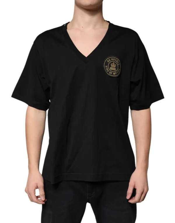 Verhoog je dagelijkse stijl. Ervaar premium comfort met dit Dolce & Gabbana V-hals T-shirt. Gemaakt van 100% premium katoen biedt dit T-shirt een zachte aanraking tegen je huid, wat zorgt voor comfort gedurende de hele dag. Het stijlvolle V-halsontwerp voegt een vleugje verfijning toe, terwijl het geborduurde DG Royals King of My Life-logo een statement maakt. Geniet van de duurzame, onderhoudsvriendelijke stof. Perfect voor casual uitjes of ontspannen dagen thuis. Machinewasbaar voor eenvoudig onderhoud, dit T-shirt past naadloos in jouw levensstijl.