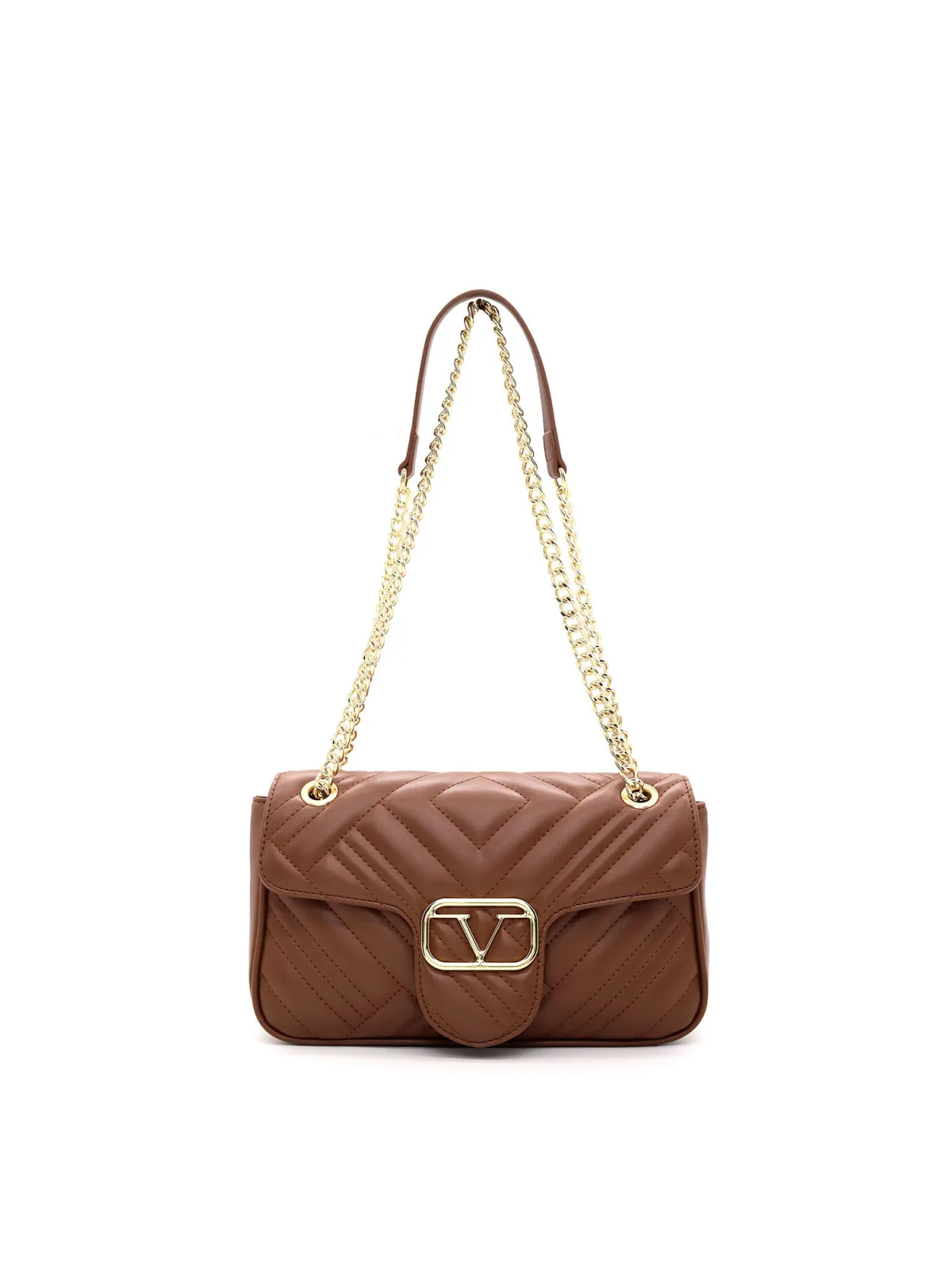 Crossbodytas voor dames met magnetische knoopsluiting. één met binnenzakken met ritssluiting. afwezige externe zakken. in ketting en schouderband van eco-leer. ontbrekend handvat. een binnencompartiment. extern materiaal. gevoerd met polyester binnenkant. Afmetingen: 25x16x6,5 cm. Modeproduct