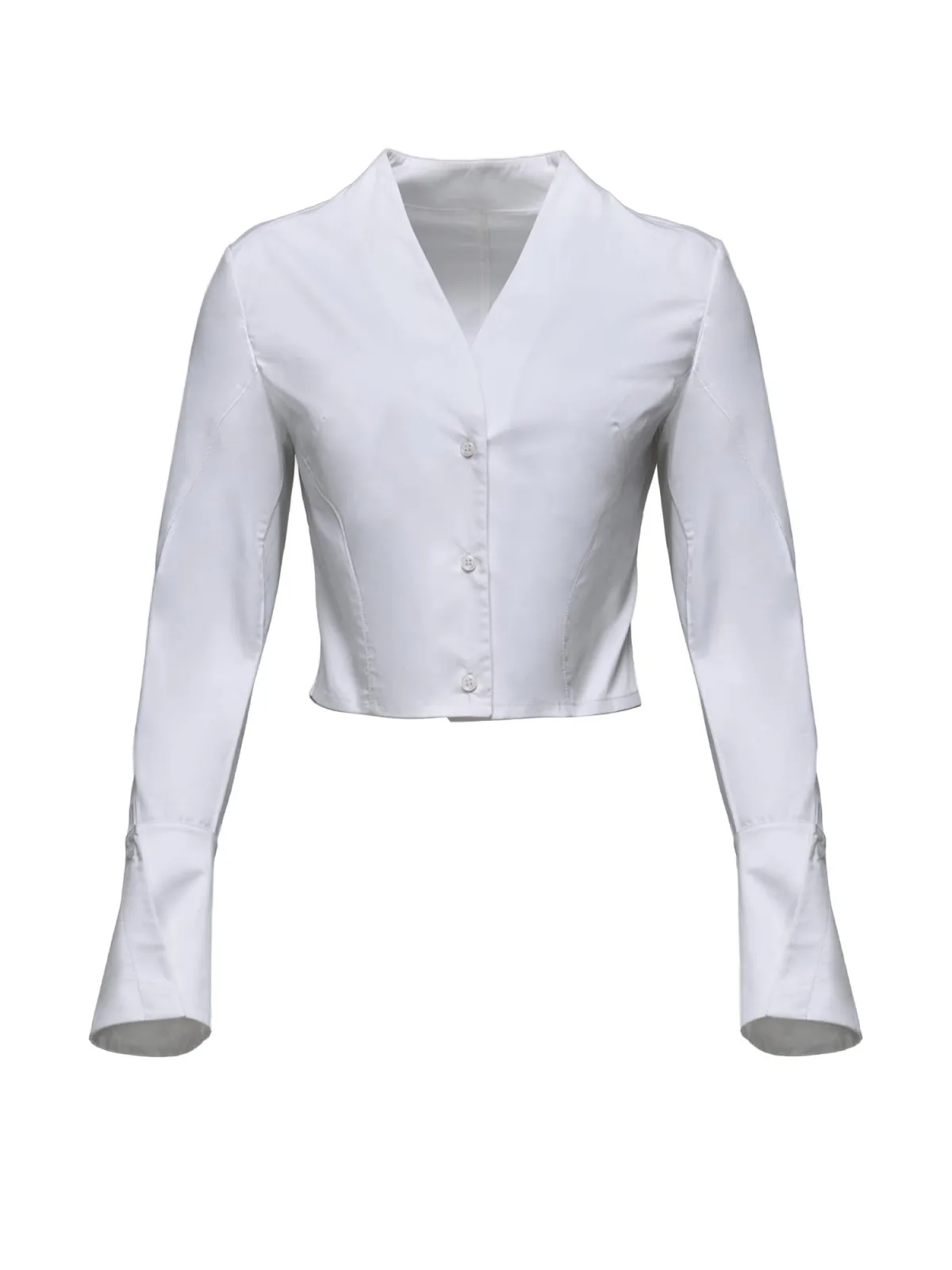 Materiaal: Jersey, Katoen; Halstype: V-hals; Motief: Effen; Pasvorm: Normale pasvorm; Armlengte: Lange mouw; Lengte: Korte pasvorm
