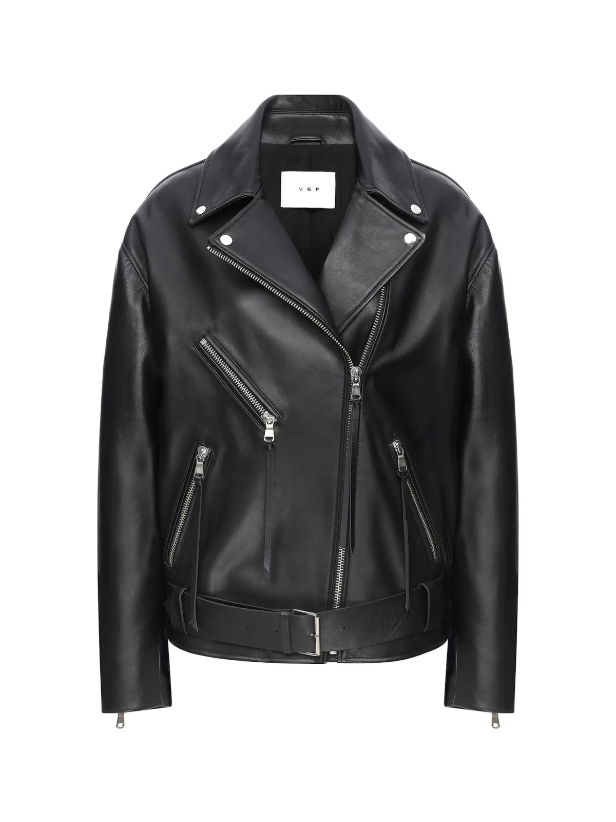 Type jas: Bikerjack; Voering: Niet gevoerd; Materiaal: Leer; Motief: Effen; Pasvorm: Losse pasvorm