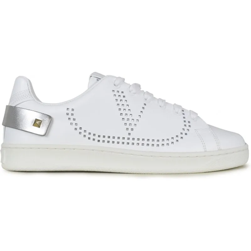 Valentino Backnet sneakers van wit leer.Decoratieve afneembare zilveren tong aan de achterkant.Decoratief geperforeerd logo.Vetersluiting.Gemaakt in Italië.