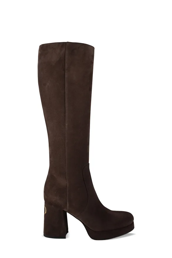 Valentino Fawcette laarzen met hoge hak in bruin suède.VLogo Signature ornament in gouden afwerking op de hiel.Ritssluiting aan de binnenzijde.Ronde hak.Ronde teen.Hakhoogte: 9 cm.Made in Italy.