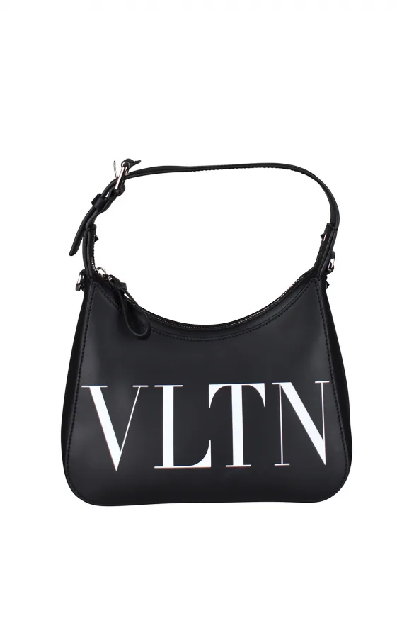 Zwarte VLTN-hobotas.Wit VLTN -logo op de voorkant.Iconische metalen studs.Geprint logo op de achterkant.Zwarte afneembare schouderband.Verstelbaar handvat. Ritssluiting.Afmetingen: diepte 8 cm x hoogte 16 cm x breedte 25 cm.Glad leer.Gemaakt in Italië.