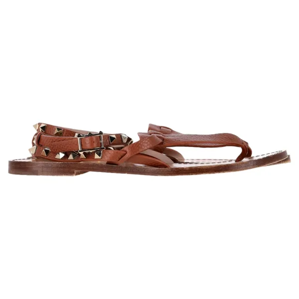 - Bij secretsales.nl kun je Valentino Garavani Rockstud T-Strap Platte Sandalen in Bruin Leer kopen voor slechts €367,00