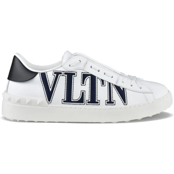 Valentino Garavani Open sneakers van wit leer.Marineblauw VLTN-logo in reliëf op de zijkant.Rubberen noppen in reliëf op de zool.Zwart lederen zool.Witte rubberen zool.Witte vetersluiting.100% leer.Gemaakt in Italië.