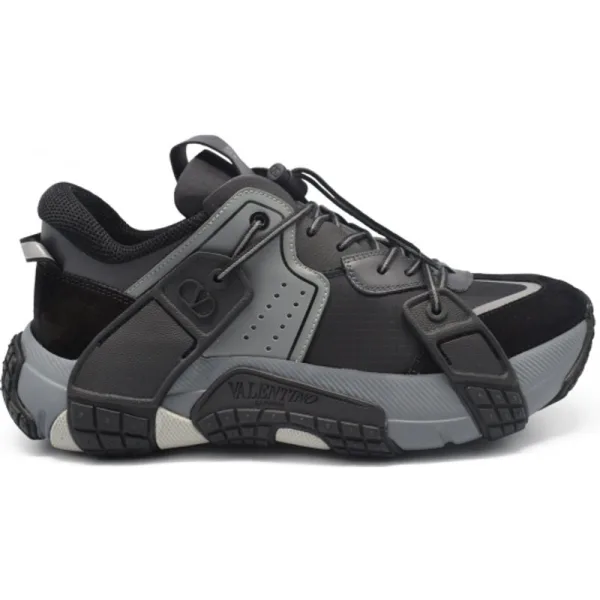 Valentino Wod-model sneakers van suède en zwart/grijze stof.Tong met logolabel.Veter- en trekkoordsluiting.Grijze en zwarte rubberen zool.Gemaakt in Italië.