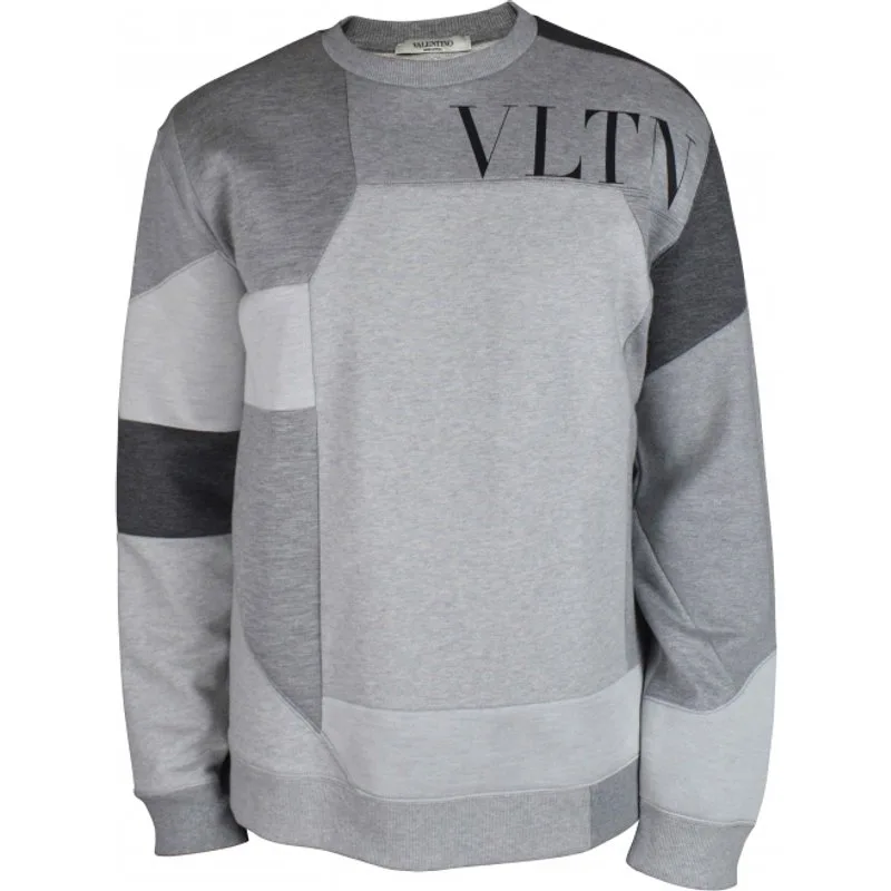 Valentino sweatshirt van grijs katoen.Lange mouwen met inzetstukken in verschillende grijstinten.VLTN-inscriptie in zwart op de borst.Ronde hals.Geribbelde randen.100% katoen.Gemaakt in Italië.