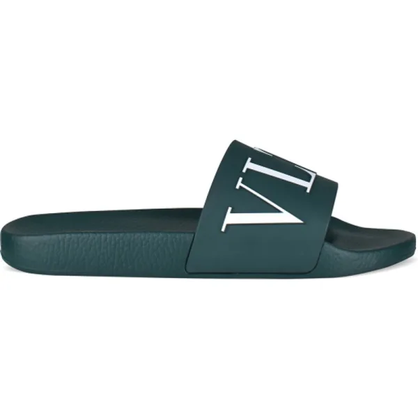 VLTN Valentino groene rubberen teenslippers.Wit VLTN-logo.Rubberen zool met camouflagepatroon aan de onderkant.Made in Italy.
