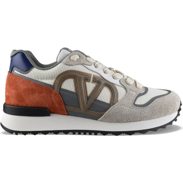 Valentino Garavani VLogo Pace sneakers in beige suède.Grijze en blauwe inzetstukken.VLogo Signature detail in bruin leer.Oranje suède toonbank.Tong met logolabel.Witte veters.Witte rubberen zool.Gemaakt in Italië.