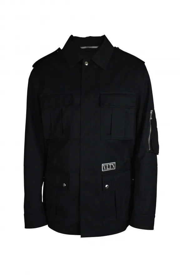 Zwarte jas Valentino Garavani.Juk VLTN aan de voorkant.Vier zakken aan de voorkant en een zak op de mouw.Klassieke kraag en epauletten met drukknopen.Ritssluiting aan de voorkant.Manchetten met knopen.100% katoen.Gemaakt in Italië.