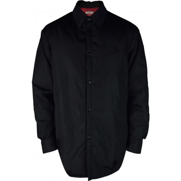 Zwart waterdicht Valentino-jack.Logoplaat met reliëf VLTN.Rode binnenkant.Klassieke kraag.Knoopsluiting aan de voorkant.Lange mouwen.100% polyamide.Gemaakt in Italië.