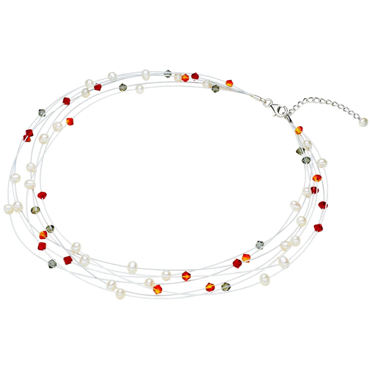Valero Pearls Ketting rood / zilver / wit