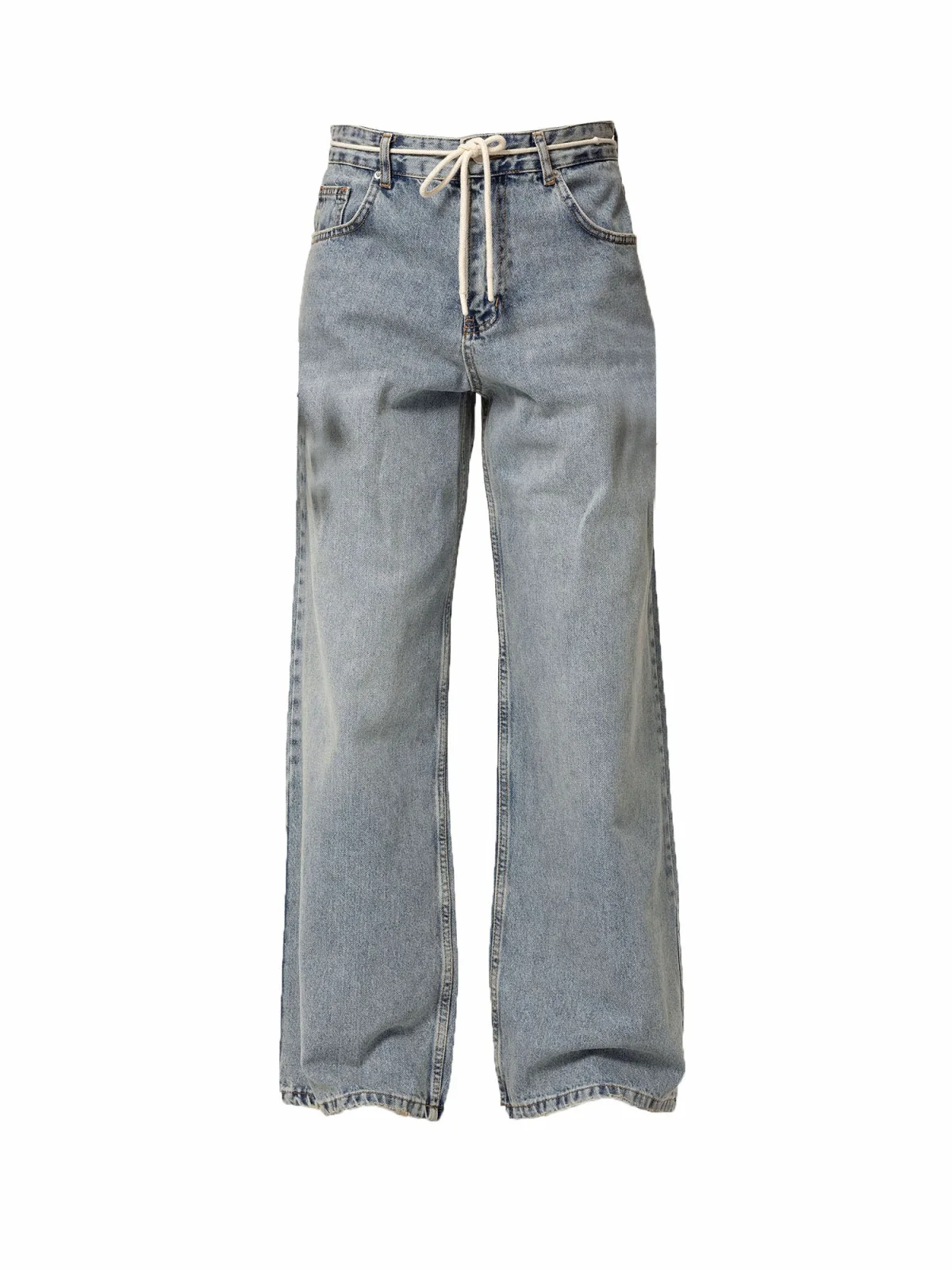Design: Ritssluiting, 5-pocket-style; Type sluiting: Knoopsluiting; Materiaal: Denim; Motief: Effen; Extra's: Label patch/label flag, Zware stof, Riemlussen; Wassing: Light washed; Lengte: Lang/maxi; Pasvorm: Wide leg