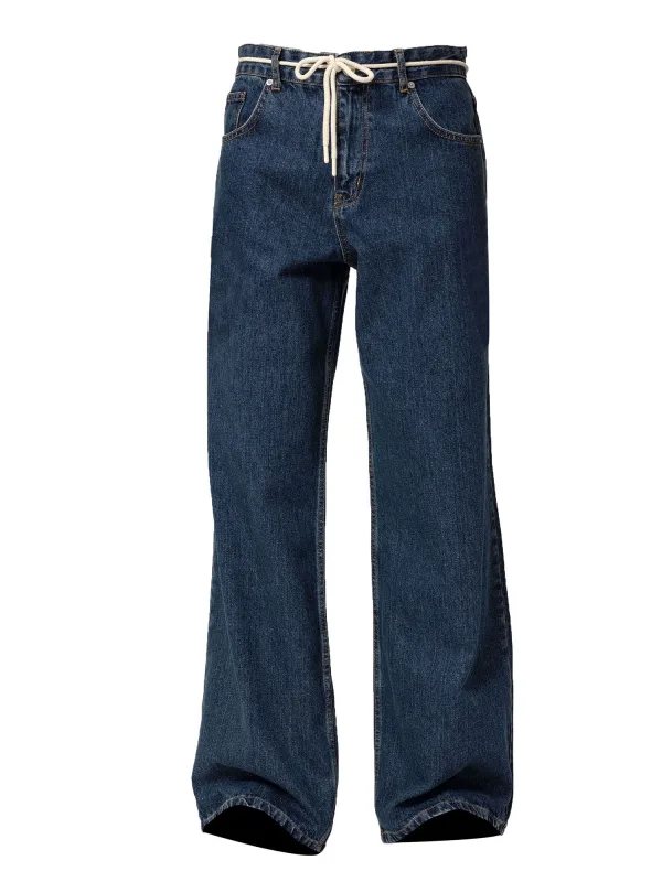 Design: Ritssluiting, 5-pocket-style; Type sluiting: Knoopsluiting; Materiaal: Denim; Motief: Effen; Extra's: Label patch/label flag, Zware stof, Riemlussen; Wassing: Rinsed/dark washed; Lengte: Lang/maxi; Pasvorm: Wide leg