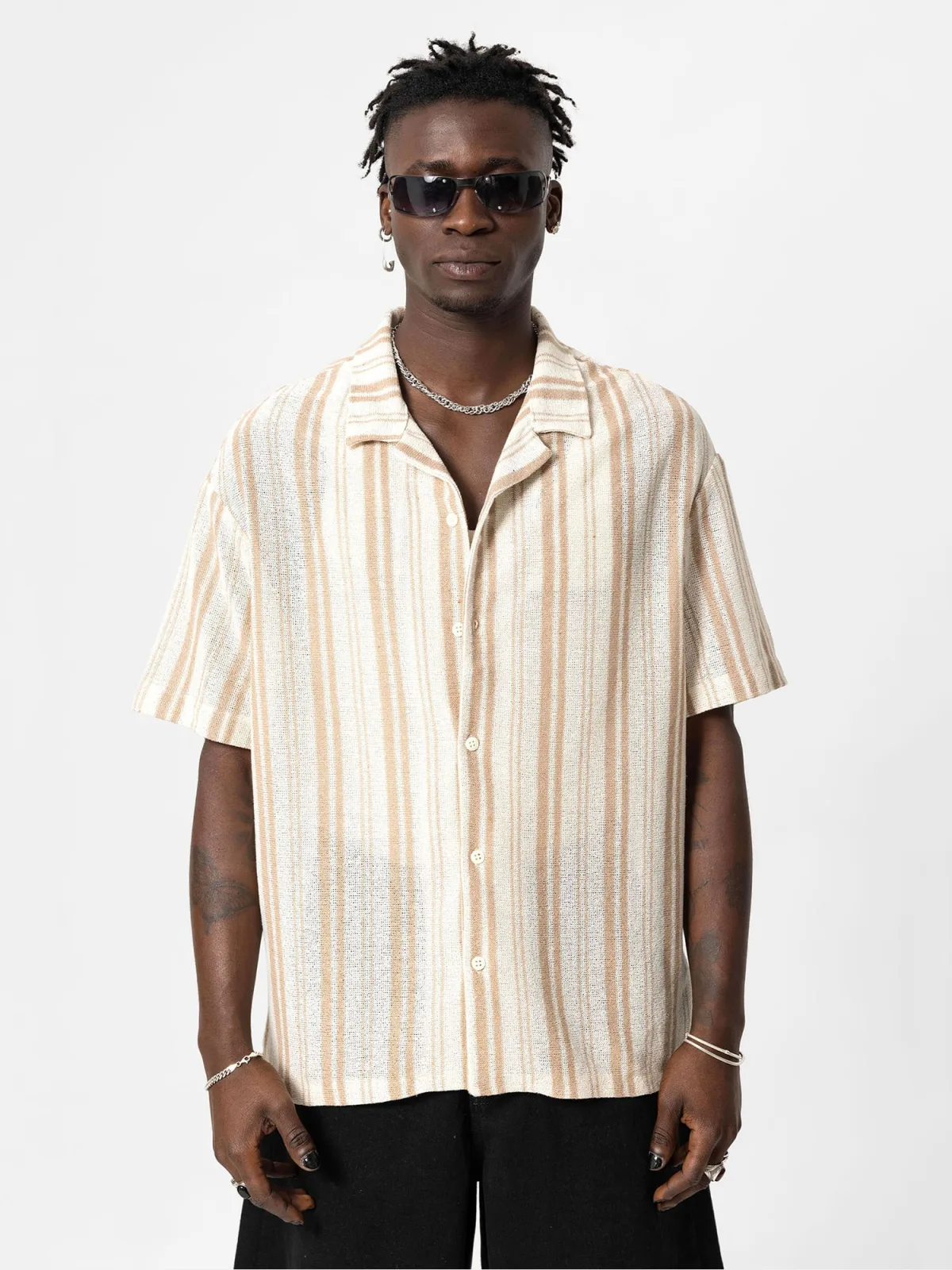 Design: Oversized, Revers kraag; Type sluiting: Knoopsluiting; Materiaal: Katoen; Motief: Gestreept; Kraag: Kentkraag; Pasvorm: Comfort fit; Armlengte: Kwartmouw