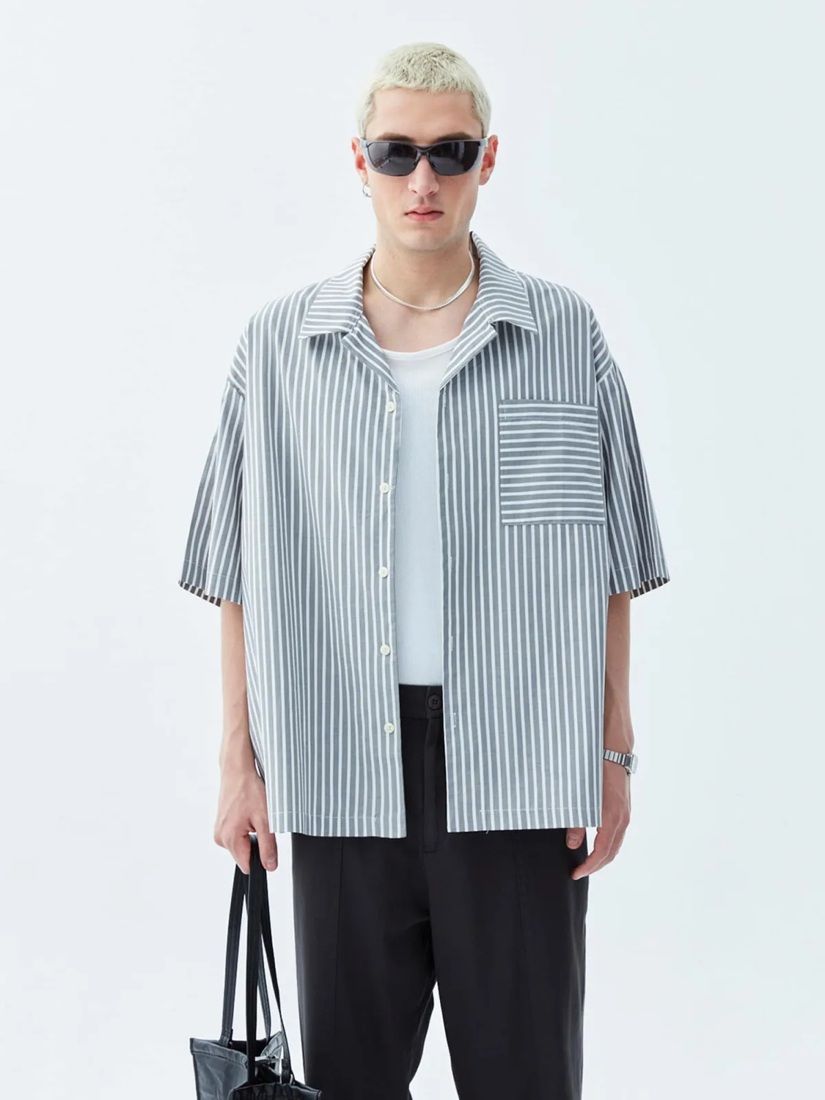 Design: Oversized, Revers kraag, Borstzak; Type sluiting: Knoopsluiting; Materiaal: Katoen; Motief: Gestreept; Kraag: Kentkraag; Pasvorm: Comfort fit; Armlengte: Halve mouw