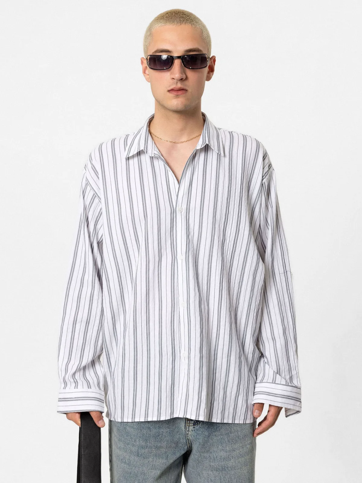 Design: 1-knoops manchetten, Recht model, Knop placket, Oversized, Knop sluiting; Type sluiting: Knoopsluiting; Materiaal: Katoen; Motief: Gestreept; Kraag: Kentkraag; Extra's: All-over patroon; Pasvorm: Comfort fit; Armlengte: Lange mouw