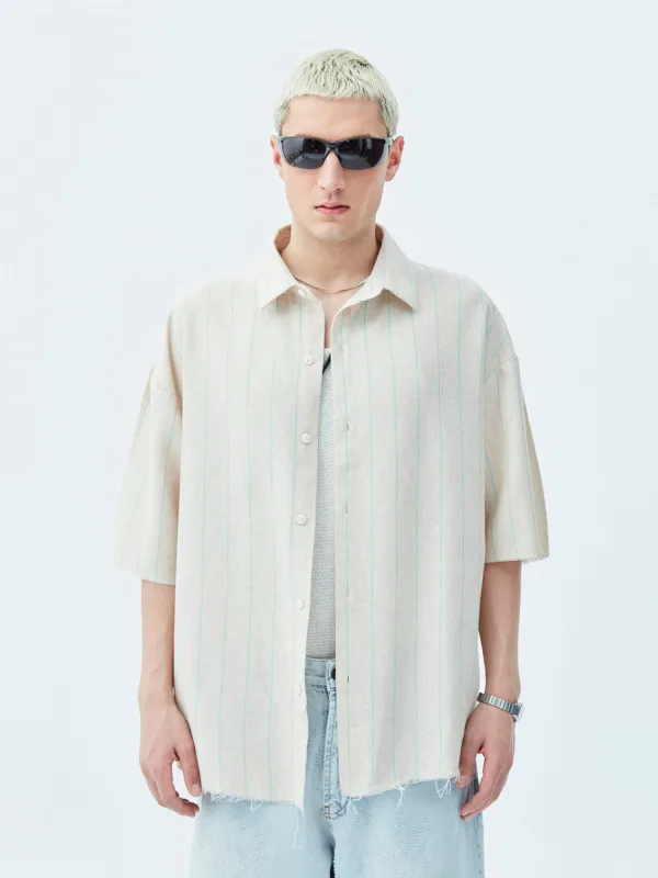 Design: Oversized, Knop sluiting; Type sluiting: Knoopsluiting; Materiaal: Katoen; Motief: Gestreept; Kraag: Kentkraag; Pasvorm: Comfort fit; Armlengte: Kwartmouw