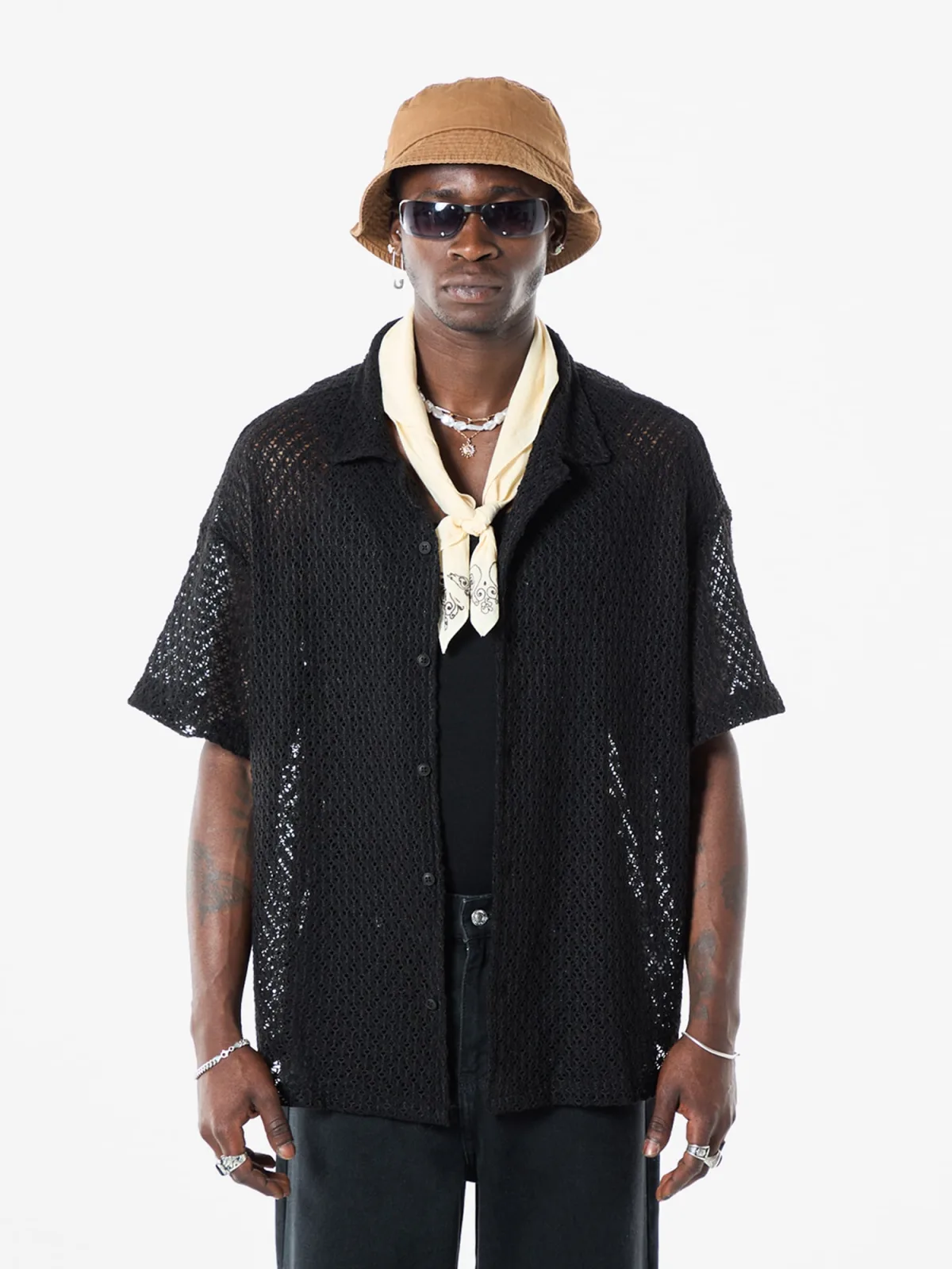 Design: Revers kraag, Knop sluiting, Brede mouwopeningen, Losvallend model; Type sluiting: Knoopsluiting; Materiaal: Katoen; Kraag: Kentkraag; Extra's: Licht transparant, Visnet brei, Lichte stof, Voelt zacht aan; Pasvorm: Comfort fit; Armlengte: Kwartmouw