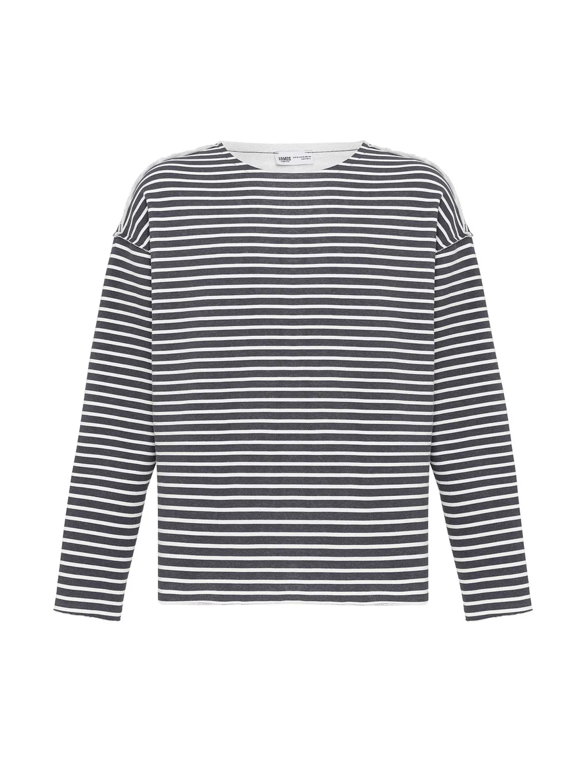 Design: Gevoerde zoom/rand, Extra lange mouwen, Open randen, Overcut schouder; Type sluiting: Gesloten; Materiaal: Jersey; Halstype: Ronde hals; Motief: Gestreept; Extra's: All-over patroon, Lichte stof, Voelt zacht aan; Pasvorm: Wijde pasvorm; Armlengte: Lange mouw; Lengte: Normale lengte