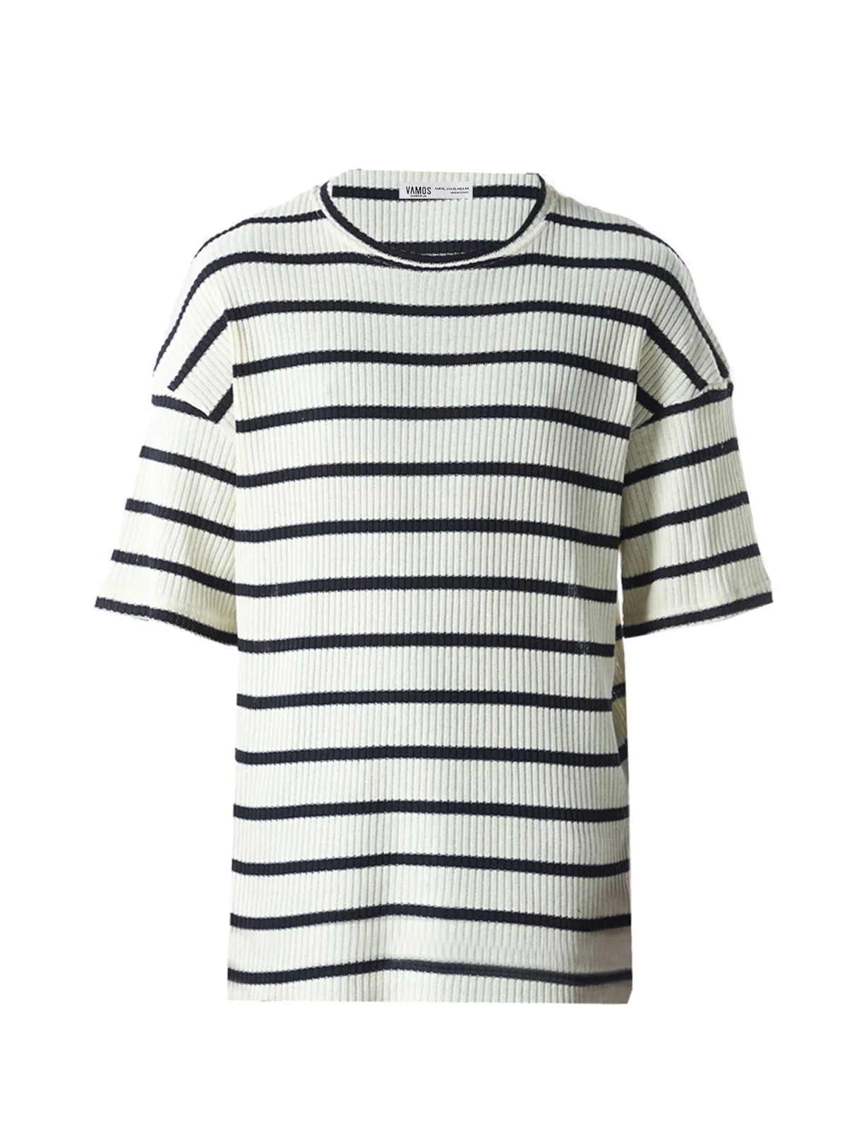 Design: Gevoerde zoom/rand, Geribbelde kraag, Brede mouwopeningen, Losvallend model; Type sluiting: Gesloten; Halstype: Ronde hals; Motief: Gestreept; Extra's: Buigzame grip, Lichte stof, Voelt zacht aan; Pasvorm: Wijde pasvorm; Armlengte: Halve mouw; Lengte: Normale lengte