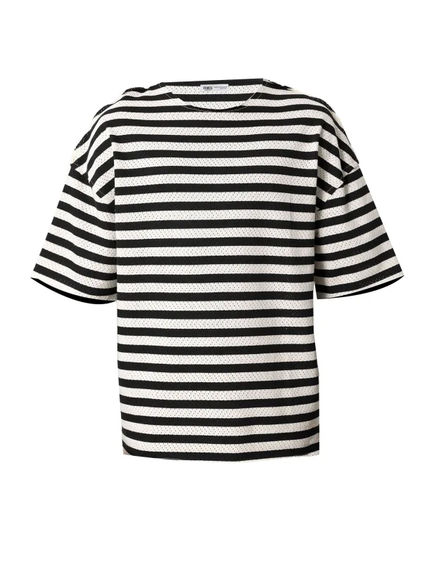 Design: Geribbelde kraag, Overcut schouder, Brede mouwopeningen, Losvallend model; Type sluiting: Gesloten; Materiaal: Jersey; Halstype: Ronde hals; Motief: Gestreept; Extra's: Buigzame grip, Lichte stof, Voelt zacht aan; Pasvorm: Losse pasvorm; Armlengte: Halve mouw; Lengte: Normale lengte