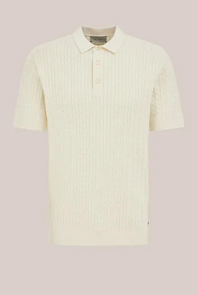 Van Gils – Heren regular fit gebreide polo met structuur – Regular fit – Ecru – Katoen –