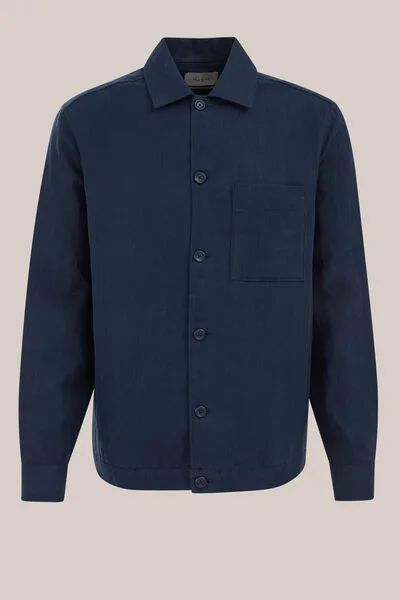Van Gils – Heren regular fit over shirt met structuur van linnenmix – Regular fit – Donkerblauw – Linnen –