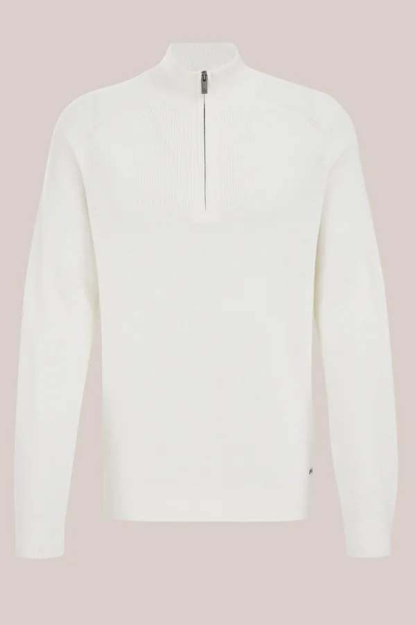 Van Gils – Heren trui met rits – Gebroken wit – Merino wol –