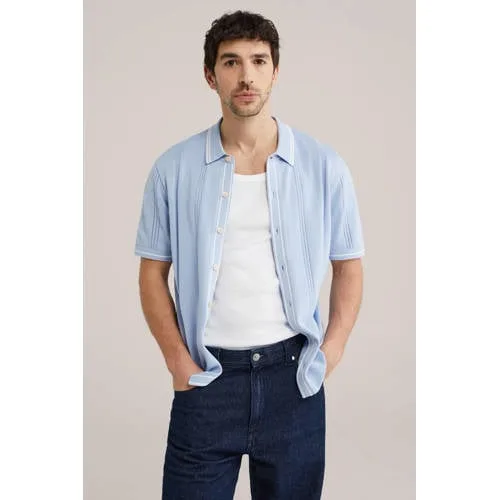 Voor een relaxte maar verzorgde look is dit WE Fashion heren overhemd een basic voor elke dag. Het casual overhemd heeft een regular fit en valt daardoor recht langs het lichaam, zonder te strak te zitten. Door de korte mouwen en de polokraag heeft het een moderne, luchtige uitstraling, ideaal voor warme dagen of een gelaagde outfit.Details die het verschil maken Regular fit voor een comfortabele, rechtvallende pasvorm Polokraag en korte mouwen voor een sportieve, casual uitstraling Knoopsluiting over de hele lengte voor makkelijk aan- en uittrekken Gedeeltelijk open structuur die licht en luchtig aanvoelt op de huid Strepen langs kraag, mouwboorden en knoopsluiting als subtiel contrastdetail Effen uitvoering in de kleur 'Morning Blue', makkelijk te combineren met jeans of chino Gemaakt van 100% katoen, een soepele stof met een zachte touch Zonder borstzak voor een rustige uitstraling Wasbaar op 30 graden, zodat het eenvoudig te onderhouden isCasual comfort voor elke dagDit overhemd past goed bij een dagelijkse garderobe. Draag het met een lichte chino voor een werkdag of combineer met een korte broek en sneakers voor een ontspannen weekend. De ingebreide structuur en contrastbies zorgen voor subtiel detail, terwijl het geheel rustig blijft.WE Fashion, vertrouwde stijl voor elke dagWE Fashion staat bekend om moderne kleding die goed aansluit bij een druk dagelijks leven. De collecties focussen op draagbare items met aandacht voor comfort en die onderling goed te combineren zijn. Zo bouw je stap voor stap een garderobe waar je op kunt rekenen.Een frisse, lichtblauwe basic die makkelijk te combineren is in jouw dagelijkse outfits.