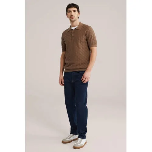 Geef je dagelijkse look een verzorgde update met deze WE Fashion heren polo. De gebreide polo heeft een regular fit, korte mouwen en een klassieke kraag met halve knoopsluiting. De all-over zigzagstructuur en de warme bruine kleur 'Evening Sun' zorgen voor een moderne, maar rustige uitstraling die makkelijk te combineren is met je favoriete broeken.Kenmerken van deze gebreide polo Regular fit, wat zorgt voor een rechte, ontspannen pasvorm Gebreide kwaliteit met ingebreid zigzagpatroon voor een eigentijdse look Kraag met halve knoopsluiting voor een nette, maar niet te formele stijl Korte mouwen, ideaal voor het voor- en najaar of als laag onder een jas Gemaakt van 100 procent katoen, voelt zacht en luchtig aan op de huid Geribde boorden langs mouwen en zoom voor een mooie aansluiting Effen kleur in een bruine tint, gemakkelijk te combineren met jeans, chino of pantalon Wasbaar op 30 graden en geschikt voor liggend drogen, niet in de droogtrommelVoor werk, weekend en alles daartussenDeze polo uit de Daily collectie is geschikt voor uiteenlopende momenten. Draag het shirt naar kantoor met een nette broek en leren schoenen, of combineer het in het weekend met een lichte jeans en sneakers. De regular fit laat zich prettig dragen, of je het nu los laat vallen of deels in je broek stopt.WE Fashion als vertrouwde basisWE Fashion staat bekend om draagbare mode met een moderne uitstraling. De collecties zijn afgestemd op het dagelijks leven, met aandacht voor pasvorm en details. Deze polo is daar een helder voorbeeld van, een betrouwbaar basisitem waar je vaak naar zult grijpen.Een verzorgde polo waar je de hele dag met gemak in rondloopt.