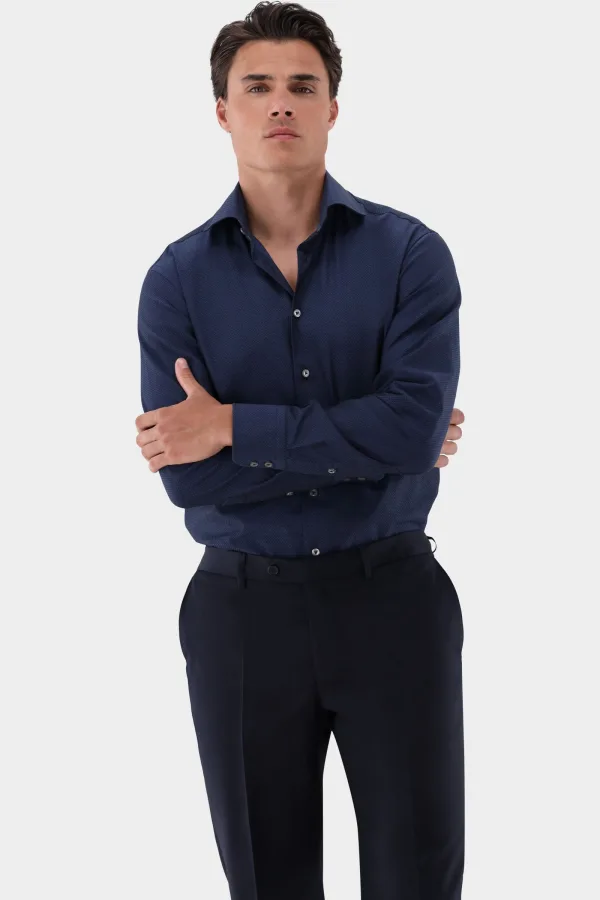 van Laack Meisterwerk Overhemd donkerblauw, Motief