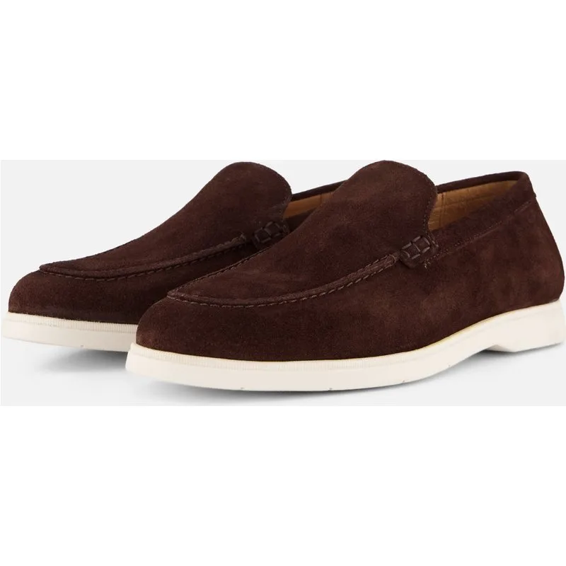 De bruine loafer van Van Lier is een elegante en tijdloze klassieker voor heren die stijl en comfort willen combineren. Het zachte suède bovenwerk in het bruin geeft de schoen een verfijnde uitstraling die moeiteloos past bij zowel casual als geklede outfits. Dankzij het loafermodel trek je de schoen gemakkelijk aan en geniet je van een comfortabele pasvorm. De soepele zool en hoogwaardige afwerking maken dit een stijlvolle keuze voor iedere moderne man.