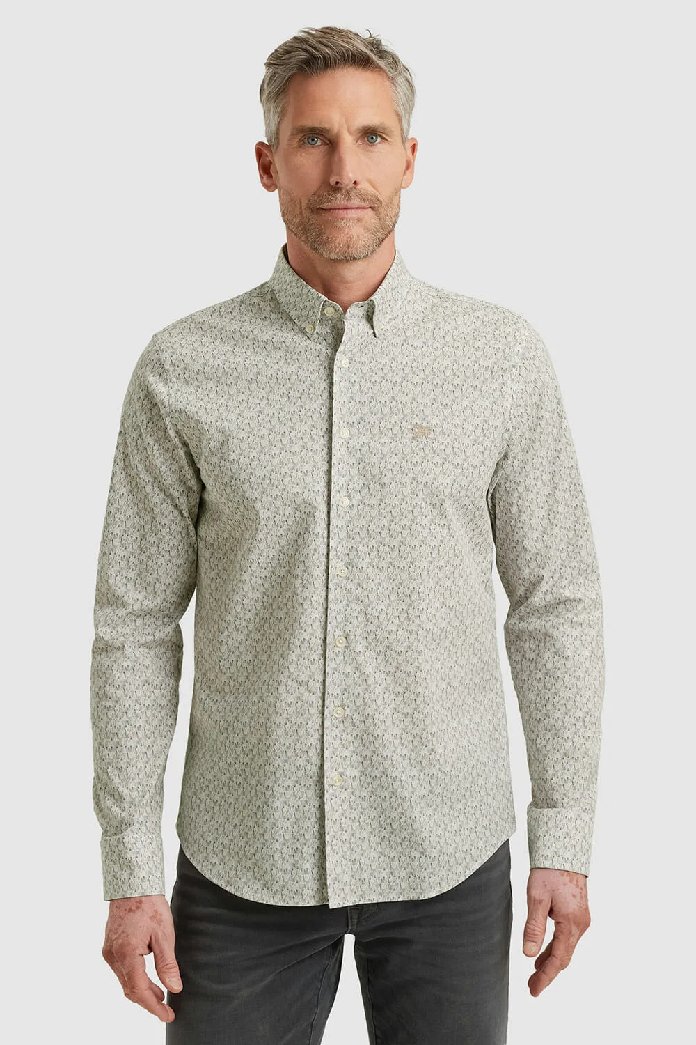 Het Overhemd Print van Vanguard is een stijlvol heren overhemd met een button down kraag en grafisch patroon. De lange mouwen zijn voorzien van manchetten met knopen, waardoor het perfect is voor zakelijke gelegenheden. Een veelzijdig kledingstuk voor een nette uitstraling.