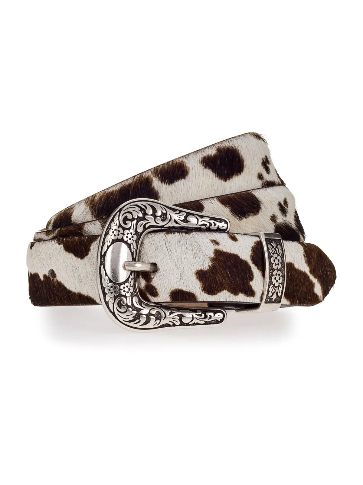 Design: Sealed edges; Type sluiting: Gesp; Materiaal: Leer; Motief: Dierenprint; Materiaal: Pels; Type riem: Heupriem; Extra's: All-over patroon