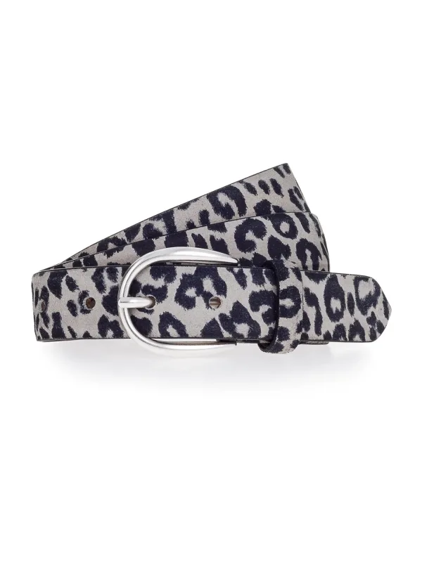 Design: Rechte zoom; Type sluiting: Gesp; Materiaal: Leer; Motief: Dierenprint; Materiaal: Suède; Type riem: Brede riem; Extra's: All-over patroon, Stevige stof, Wijdte verstelbaar