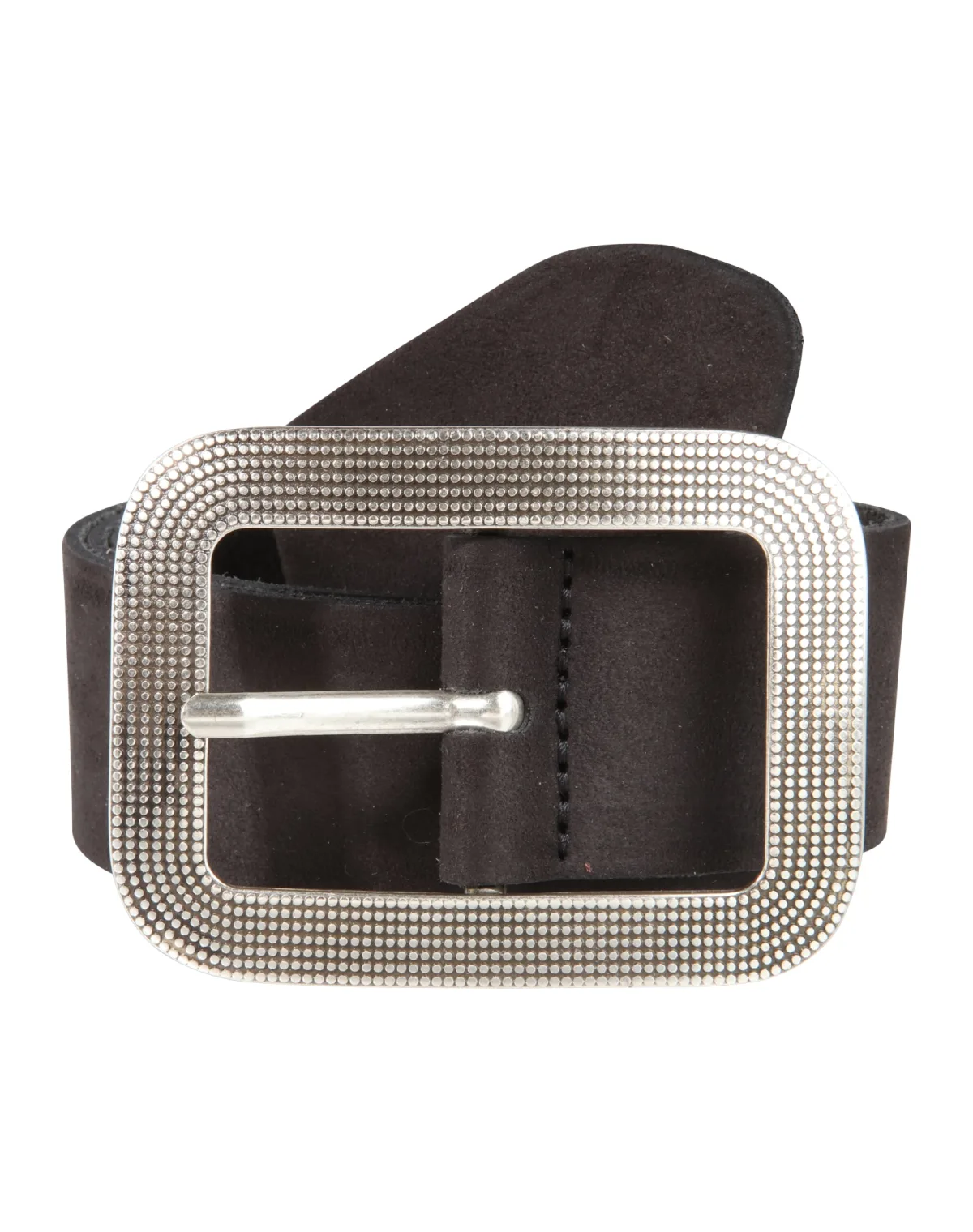 Design: Gevoerde zoom/rand; Type sluiting: Gesp; Materiaal: Leer; Materiaal: Suède; Type riem: Brede riem; Extra's: Op staal naden, Label preegdruk, Buigzame grip