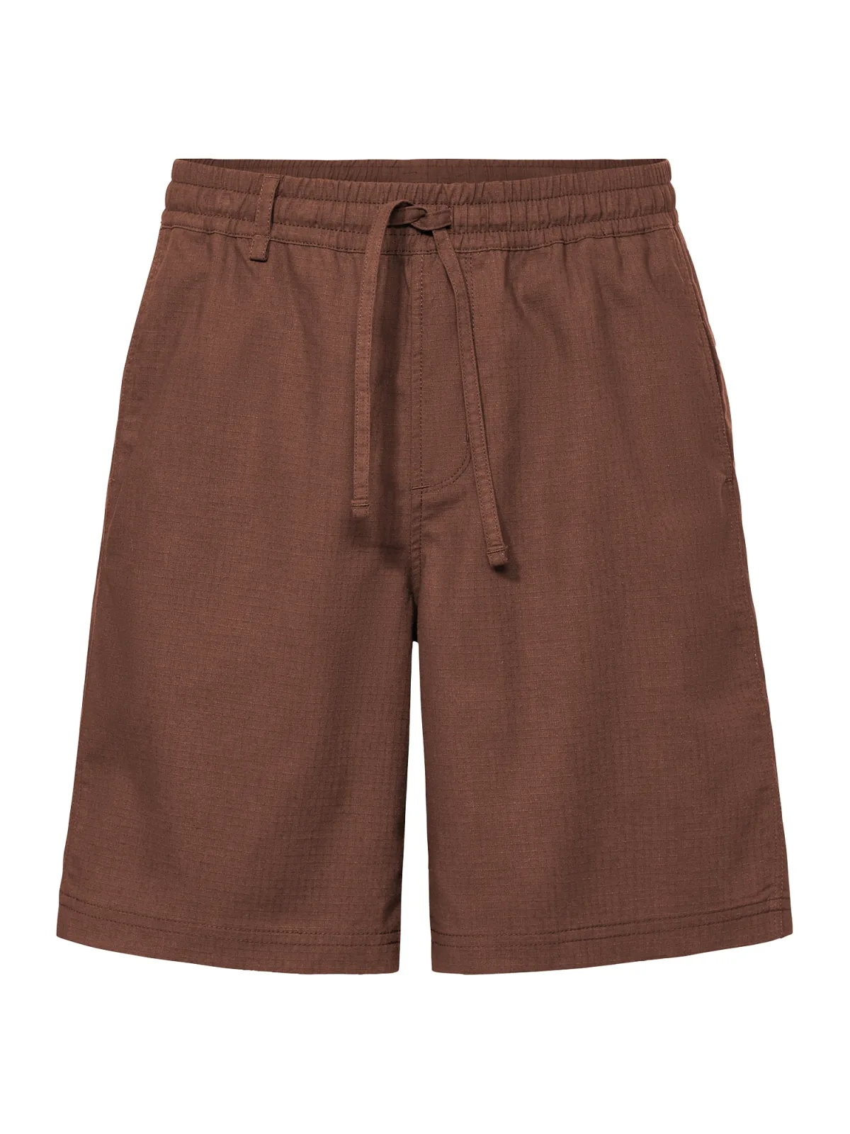 Design: Paspelzak; Type sluiting: Ritssluiting; Voering: Niet gevoerd; Motief: Effen; Extra's: Label patch/label flag, Riemlussen; Details: Elastische broekband; Lengte: Knielengte; Pasvorm: Regular