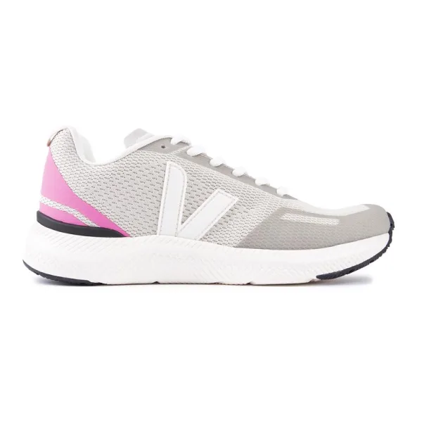 Veja's Impala Engineered Mesh trainers zijn veelzijdig. ecotreaded trainer. Ze zijn ontworpen om duurzaam en comfortabel te zijn. plus. ze zijn milieuvriendelijk. Deze witte sneakers in hardloopstijl hebben een bovenmateriaal van gerecyclede flessen met roze hakdetails. voering van biologisch katoen en een stevige witte rubberen zool.