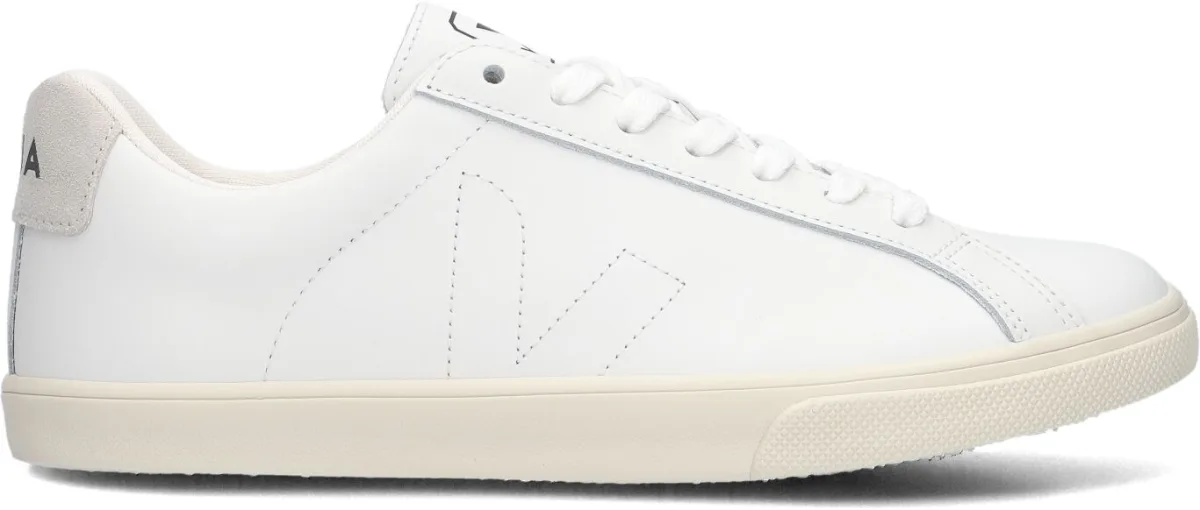 Witte leren damessneakers van Veja Esplar met veters, kenmerkend V-logo aan de zijkant en merklogo op de tong en hiel. Deze damessneakers hebben een voering van gerecycled polyester, zijn gemaakt van ecologische en duurzame materialen in Brazilië en zijn een must-have mode-item.
