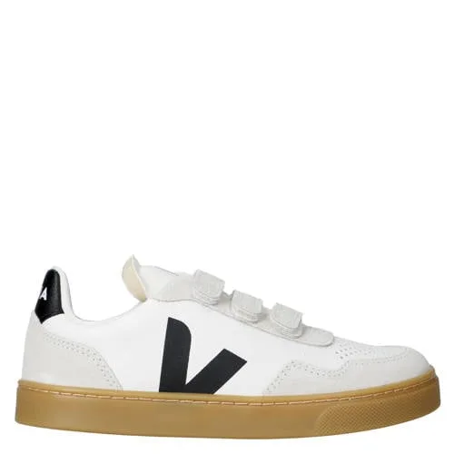 Deze Veja Small V-90 sneaker is gemaakt van leer met een textielen voering. De sneaker heeft een platte zool en sluit met klittenband, wat aan- en uittrekken makkelijk maakt.