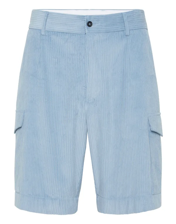 We take care of your relaxing moments, too. We recommend these velvet cargo bermuda shorts. Corduroy Logoed patch Slit pockets Two cargo pockets with press-stud flaps Waistband with button