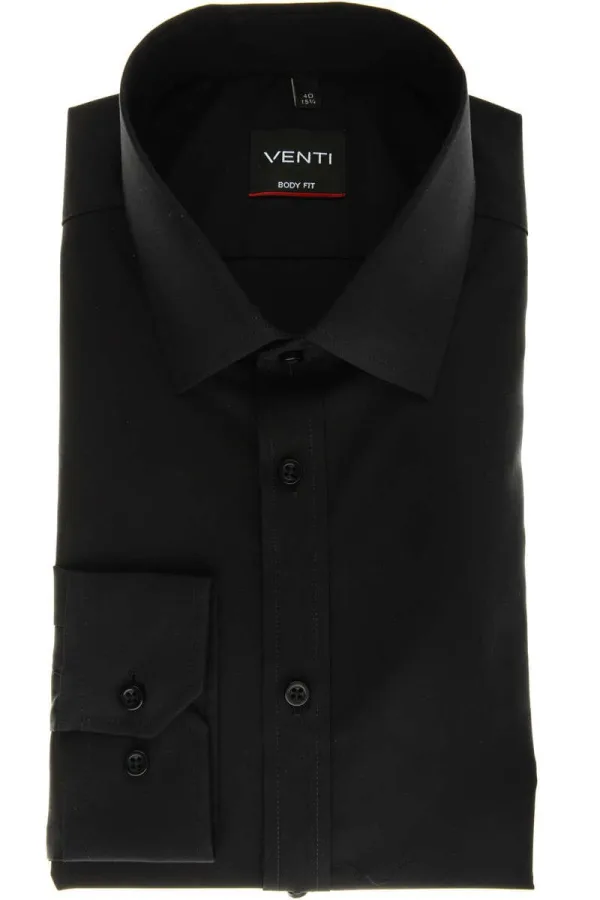 Venti Body Fit Overhemd zwart, Effen Prijzen