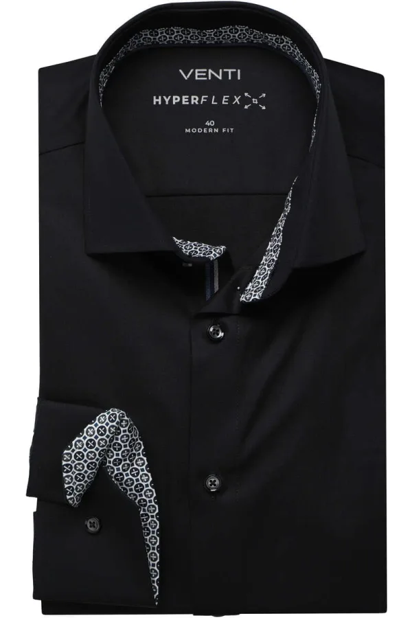 Venti Hyperflex Modern Fit Overhemd zwart, Effen Prijzen