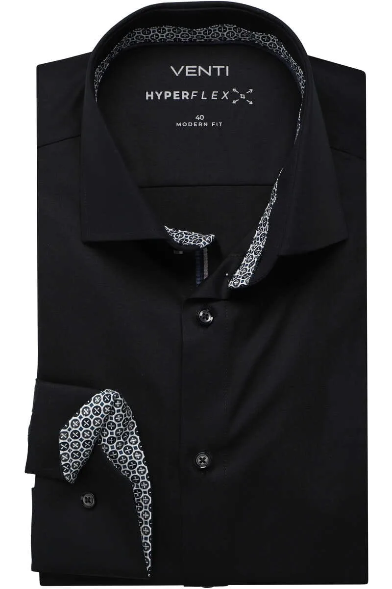 Venti Hyperflex Modern Fit Overhemd zwart, Effen