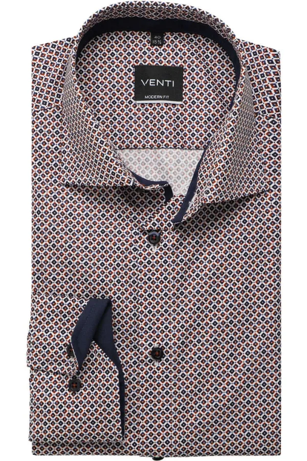 Venti Modern Fit Overhemd blauw/bruin, Motief Prijzen