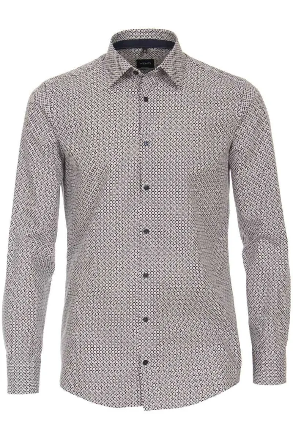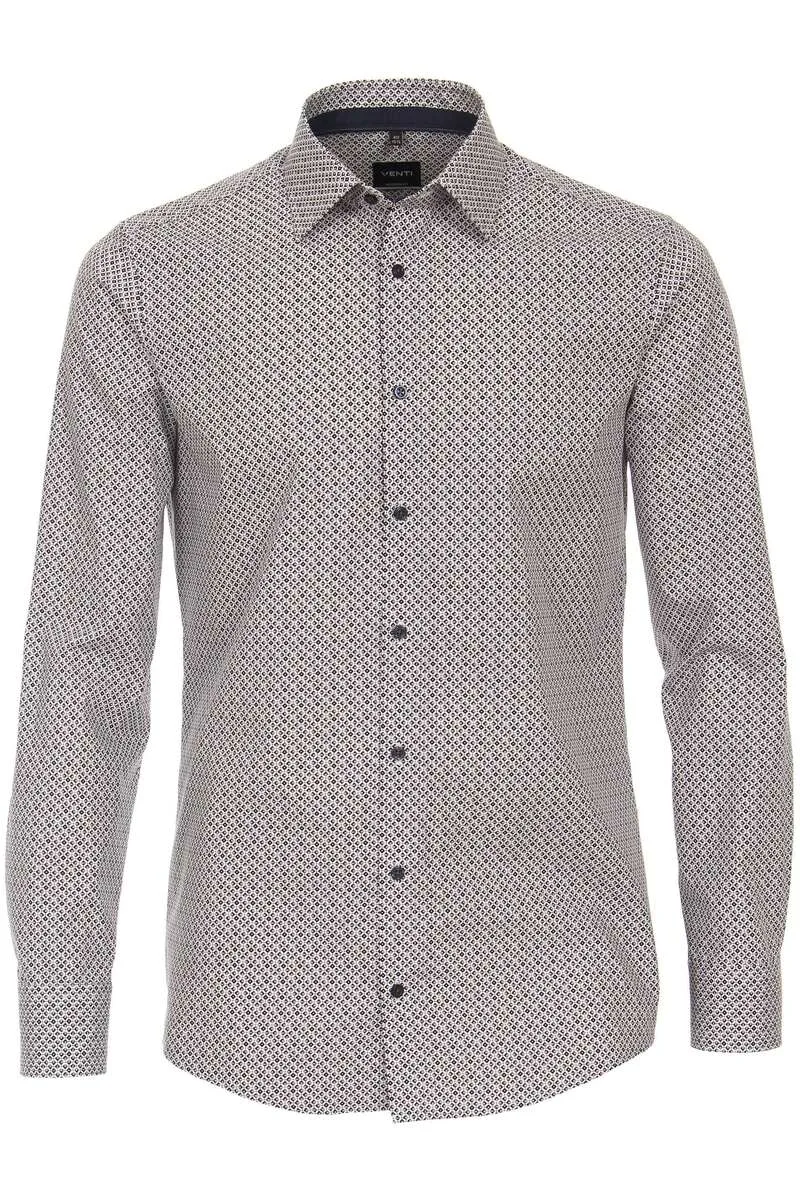 VENTI modern fit overhemd popeline bruin dessin Strijkvriendelijk Boord