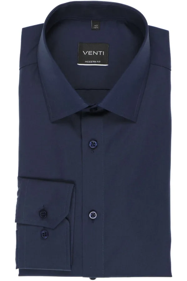 Venti Modern Fit Overhemd donkerblauw, Effen Prijzen