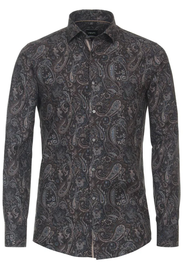 Venti Modern Fit Overhemd donkergrijs, Paisley Prijzen